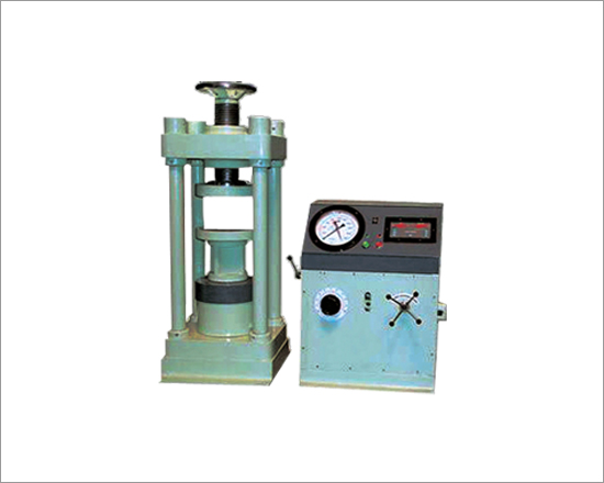are very convenient and useful for site use where carrying frequently the specimens for testing in a standard Laboratory is inconvenient and uneconomical. With special attachment the machines can also be use for bricks hallow or solid concrete blocks, using appropriate capacity machine In general a Compression Testing Machine consists of a Load Frame with suitable platens and a Pumping Unit with Pressure Gauge, either hand operated or electrically-cum-hand operated. Load Frame and Pumping unit are connected by pressure pipes.