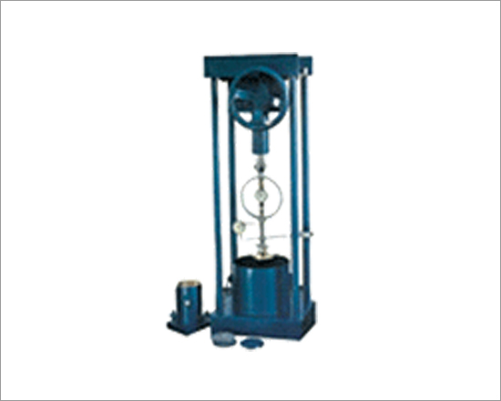 Specifications: Comprises of a hand operated load frame, cap. 5000 kgf with screw jack fro loading, handle and strain dial gauge bracket, adaptor fro proving ring, conical seats and male/female coning tools for 38 mm dia. sample. Supplied without proving ring, dial gauge.