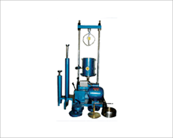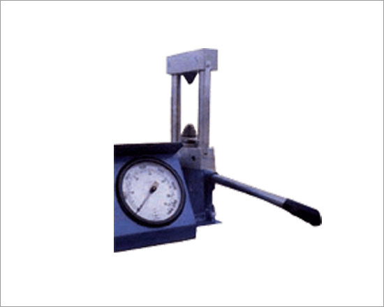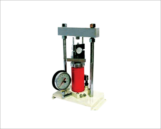 Specifications: The instrument comprises of:- A three pillar type load frame on the base of which at the centre is fixed a 10 tone capacity hydraulic jack. With a conical platen at the top of jack. The other conical platen is fixed to the top plate of the frame at its centre. The distance between two conical platens is adjustable by vertical movement of the upper plate of the load frame. Loading jack with integral hand operated pump and a pressure gauge 0-2500kg. x 25kg.