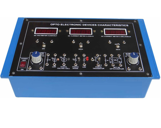 Experimental Training Board has been designed specifically to study the characteristics of Opto Electronic Devices. Different experiments have been included in this Opto Electronic Devices characteristics board in order that a wide range of topics on Opto Electronics Devices Characteristics be covered in a short span of time. All the circuits for obtaining the characteristics of various devices can be easily assembled on this versatile training board itself.