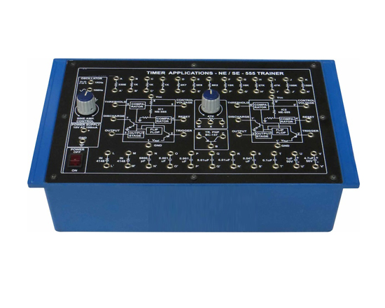 Experimental Training Board has been designed specifically to study various applications of Timer IC 555. This Training Board is useful to realise 50% Duty Cycle Oscillator, Ramp Generator, Time Delay Circuit, Sequence Generator, Schmitt Trigger, Monostable Multivibrator, Astable Multivibrator, Pulse Width Modulator, Pulse Position Modulator etc.