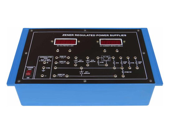 Experimental Training Board has been designed specifically for the study of regulated power supplies based on Zener Voltage regulating diodes. A Zener diode is generally employed in a standard circuit as a voltage regulator. This training board deals with some more possible voltage regulating circuits apart from the standard one. The board is absolutely self contained and requires no other apparatus.