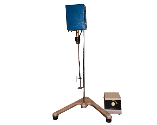 Safe and a versatile unit. A very high torque is developed at a relatively low operating speed. It is suitable for affectively stirring high viscosity fluids and pastes. Geared Motor 1/20 H.P., 4000 rpm, continuous type motor is coupled to speed reducing gear unit giving output speed of 150 rpm at 220 volts AC/DC. Stirrer Shaft 8 mm. dia., 350 mm long shaft fitted with 4 bladed turbine impeller made of stainless steel. Speed Control Variable speed controller, mounted in a metal housing. Digital Speed controller also available. Stirring Capacity 2 to 3 kgs. of thick materials.
