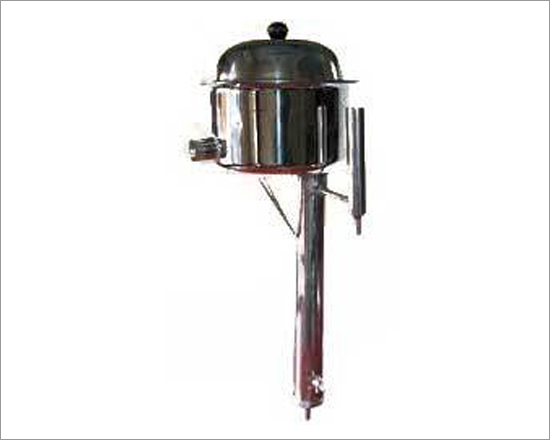 Electrically operated, it gives pyrogen free distilled water. The main body is made of stainless steel sheet. A triple vapour baffle of stainless steel is provided, the lid gets automatically sealed by water forming in a recess in the head of the lid and this minimises the loss of steam. The still is fitted with immersion type elements which are capable of displacing the connectors if the still runs dry. However to ensure long service special care should be taken to avoid the still running dry as the protective arrangement cannot be expected to last beyond three operations. In case of burn out of the heating elements it can be easily replaced. The stated output of the Still is approximate as it is bound to vary according to the voltage of the mains. The still is provided with wall brackets.