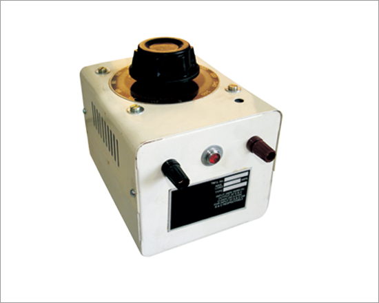 Continuously variable voltage autotransformer, protected type. Comprises a tordially wound transformer with a continuously variable output voltage 0-260 volts A.C. steplessly under full load. Input 220-240 Volts A.C. 50 Hz. In stout metal case mounted on a metal base with two output terminals. Single phase with mains cable.