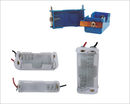 Battery Holder stackable accommodate upto 1.5V, held in spring clips 4 mm. sockets for 1.5, 3, 4.5, 6, 0 Volt tappings. Supplied without battery.