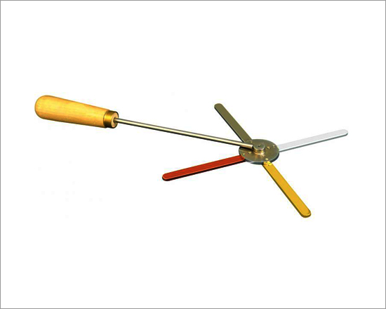 A metallic disc is fitted with four metals copper, brass, aluminum and iron strips to demonstrate the different thermal conductivities of different materials. Star assembly is fitted with a insulated handle to hold it.