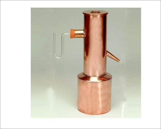 For determining the upper fixed point of thermometers and boiling points at Barometric pressures other than the atmospheric pressure. Comprising a double walled upper cylindrical boiling vessel with a steam jacketed inner tube, mounted on a stem boiler. A lid with a tubule is provided at the top, which holds thermometer under test through a holed rubber bung mounted in the tubule. Fitted with a side outlet draining tube and a glass manometric tube 1060480/1 Hypsometer, all sheet metal components of copper 1060480/2 Hypsometer, all sheet metal components of GI sheet, finished in hammer tone.
