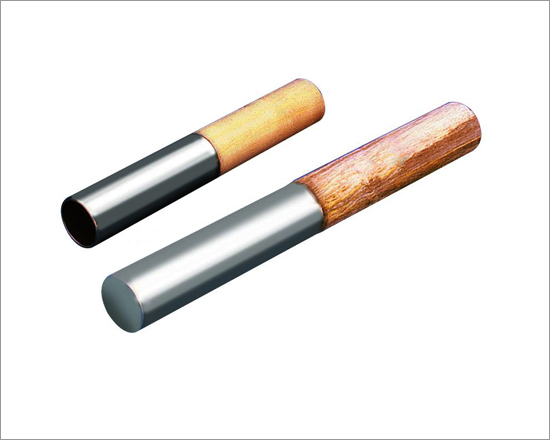 Comprising a cylinder, one half of which is polished wood and the other half the other metal. If paper is wrapped tightly around the cylinder and the rod is held above the flame, the portion in contact with the wood will be quickly scorched while the portion in contact with the metal will remain uncharred, showing the differences in their respective thermal conductivities. 1060280/1 Wood & Metal Cylinder, Small 1060280/2 Wood & Metal Cylinder, Big