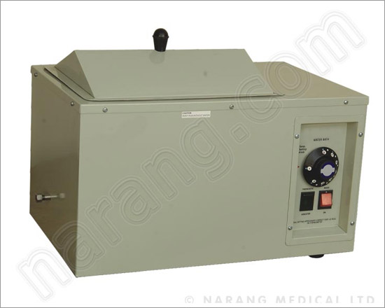 - Double walled, inside made of stainless steel 304 grade and out side mild sheet painted with attractive stove enamel. Temperature is controlled by a hydraulic thermostat from 5°C above ambient to 100°C with sensitivity of ± 0.5°C fitted with ISI mark Tublar Element. Bath consists of 2 pilot lamps & on/off switch, to work on 220/230 Volts A.C.
